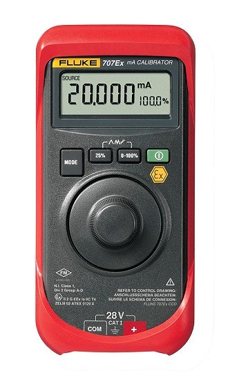 The Fluke 707Ex is an intrinsically safe loop calibrator for use in explosion endangered areas. The Fluke 707Ex is certified in accordance with the ATEX directive (Ex II 2 G Eex ia IIC T4) in Zones 1 and 2. The Fluke 707Ex is also certified to operate in accordance with Factory Mutual N.I. Class 1, Division 2 areas Group A-D.